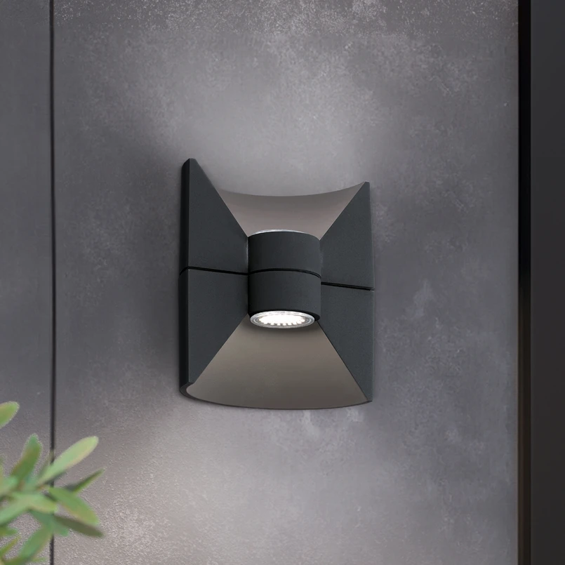 Buitenwandlamp Redondo, antraciet, hoogte 17 cm, metaal, 2-lamps.
