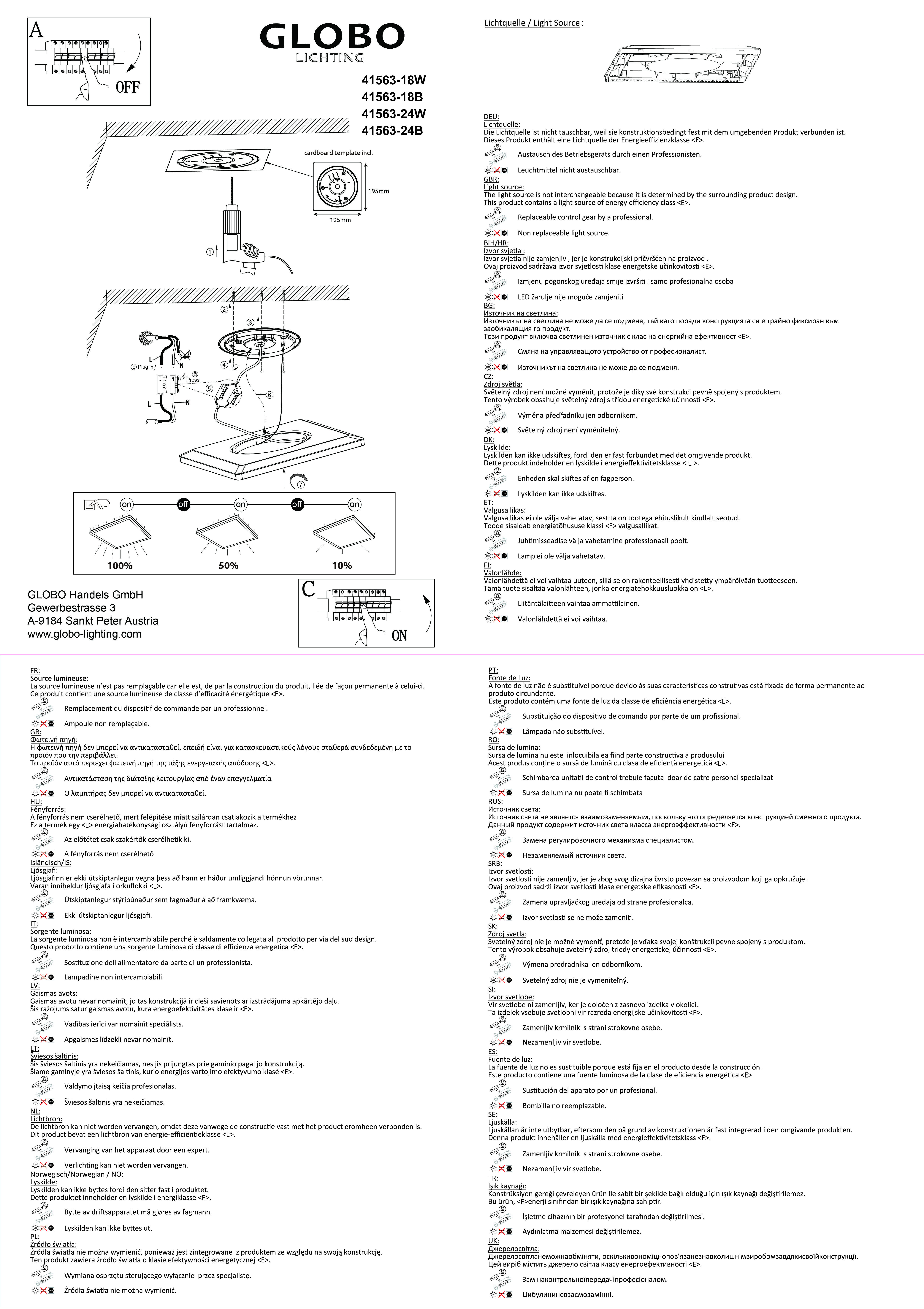 - Lichtbron: LED 18 W totaal