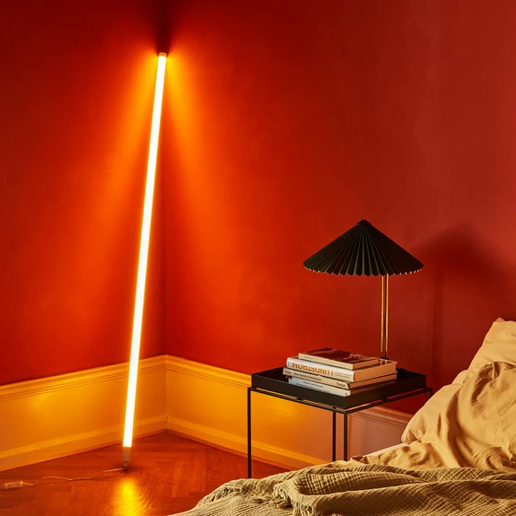 Neon Tube LED Red is een eenvoudige lamp geïnspireerd op de bekende fluorescerende lamp. Hij is verkrijgbaar in een reeks kleuren die sfeer toevoegen en de stemming bepalen. In het donker doet de dunne strook sfeervol licht denken aan een lichtsabel uit Star Wars.