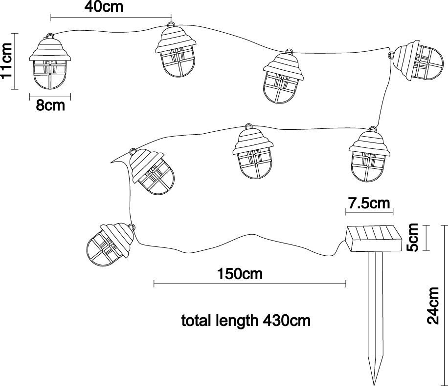 LED-solar-lichtketting Lina uitgerust met 8 lantaarns